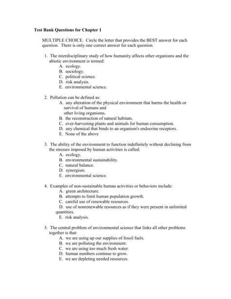 Free PDF ENVIRONMENTAL SCIENCE TEST BANK ANSWERS AND QUESTIONS Doc Internet Archive
